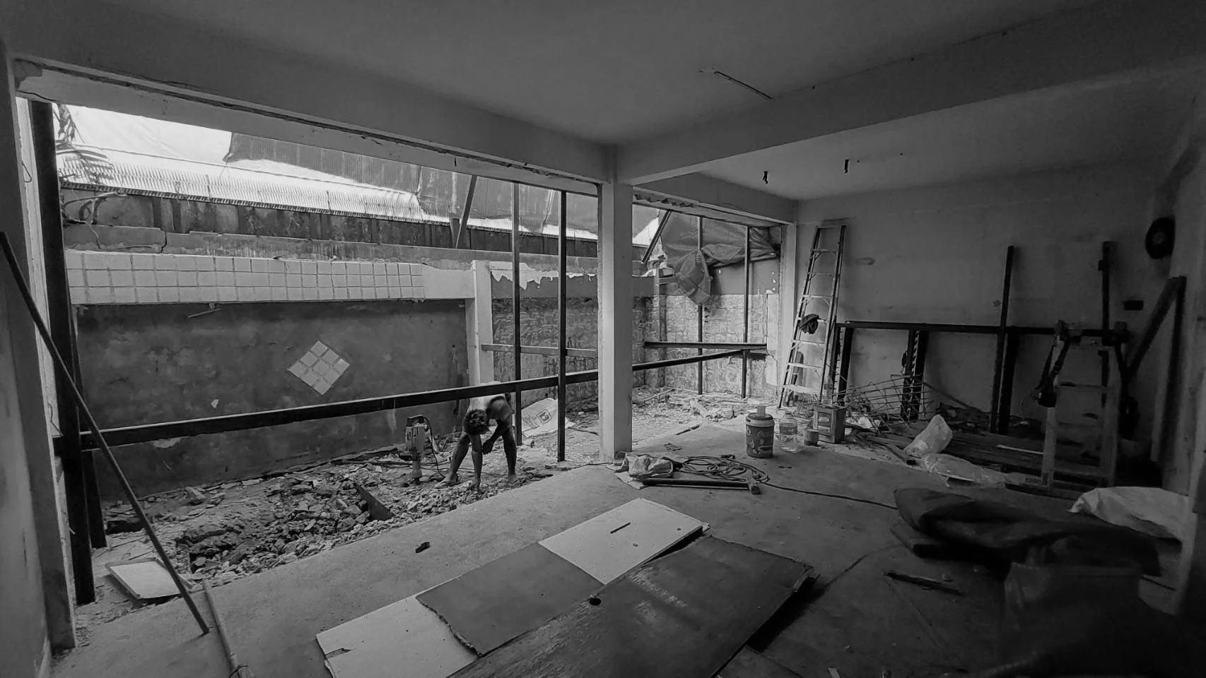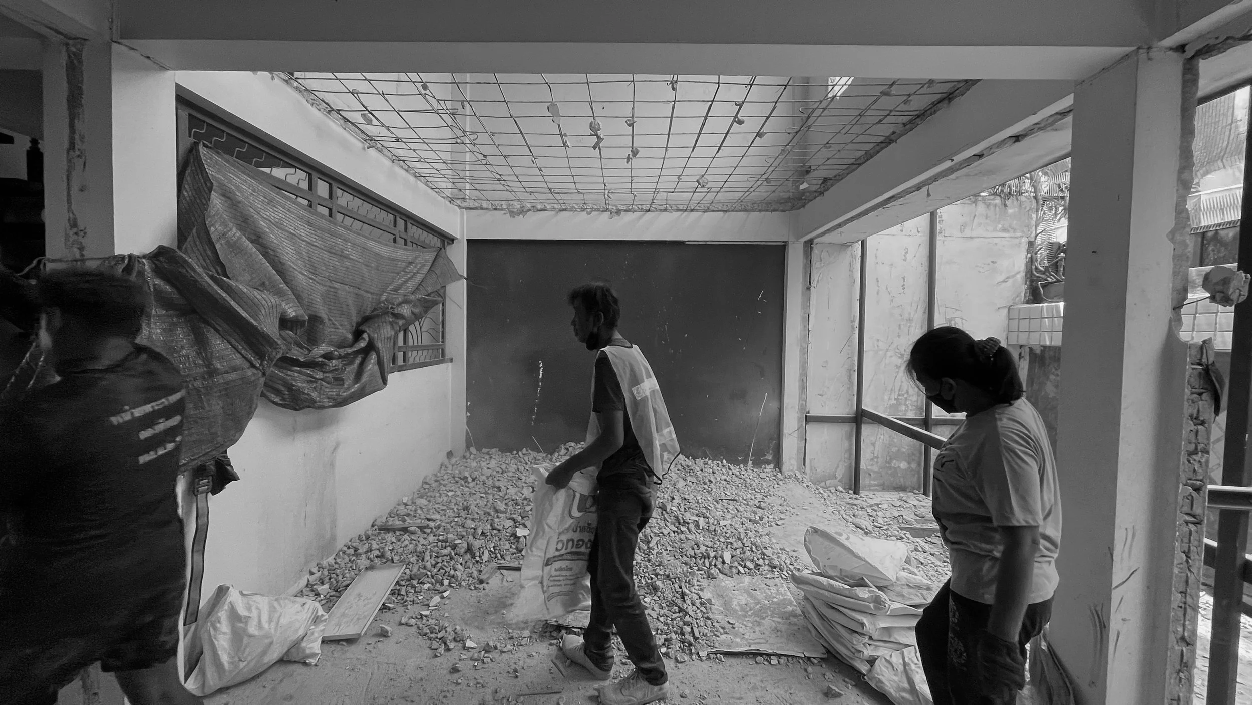 The Collaborative Design Process: จากกระดาษสู่หน้างาน งานชิ้นนี้คือบทพิสูจน์ของการทำงานร่วมกันระหว่างผู้ออกแบบและเจ้าของบ้าน เมื่อการรื้อถอน (Demolition) ต้องดำเนินไปควบคู่กับการปรับแบบก่อสร้างอย่างเร่งด่วน ทีมงานเริ่มต้นด้วยการสำรวจโครงสร้างเดิม (Site Survey) อย่างละเอียด พบปัญหาคลาสสิกของบ้านเก่า เช่น งานหลังคาและระบบกันซึมในห้องน้ำ