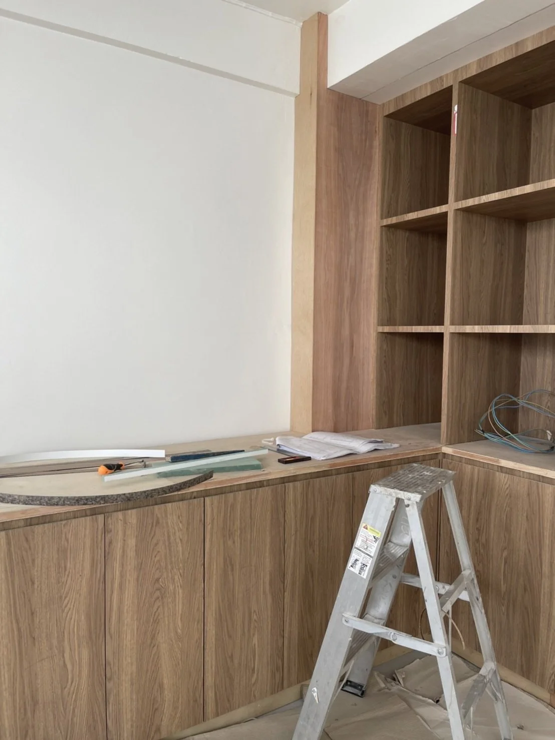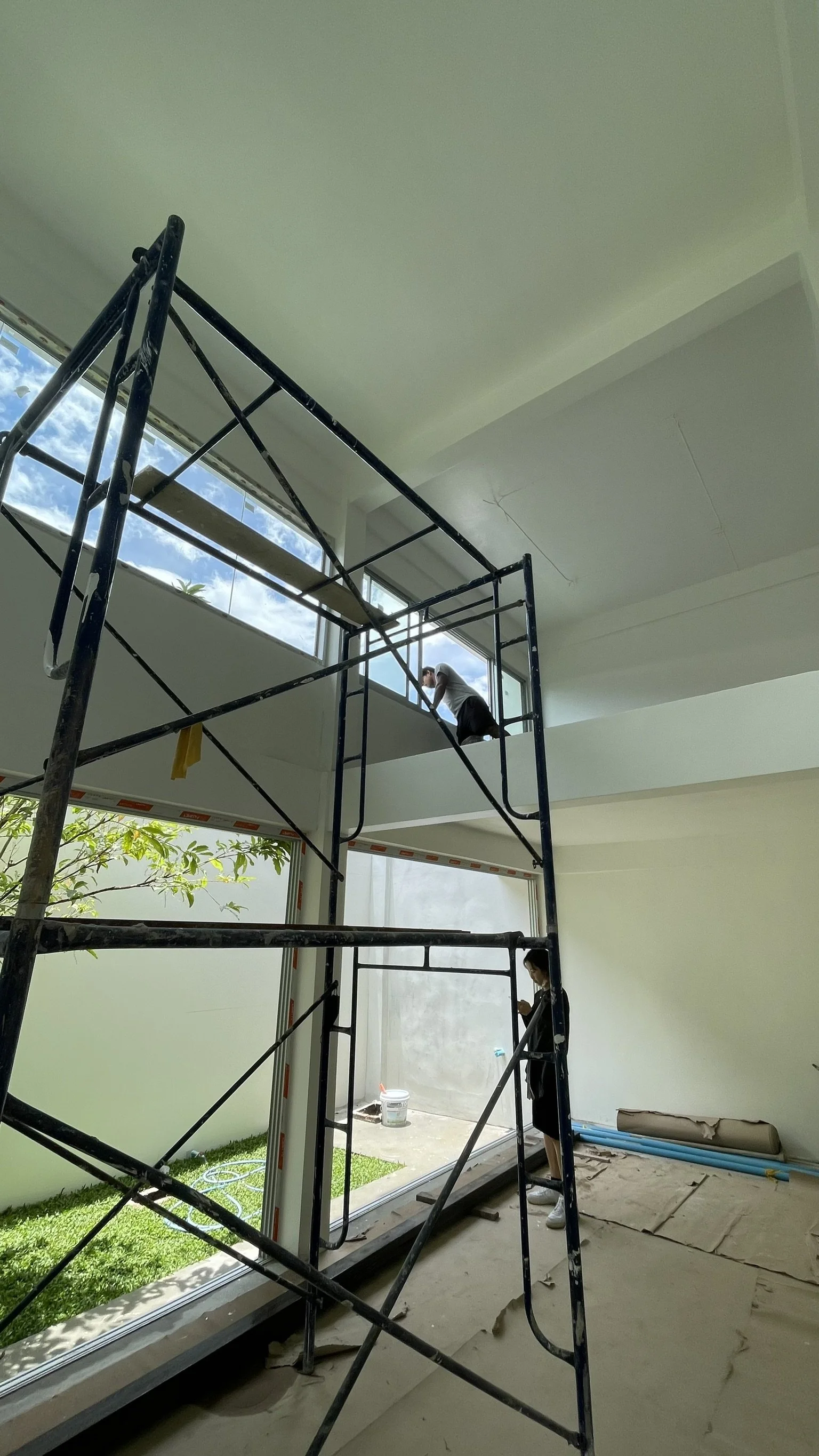 เมื่อผ่านพ้นขั้นตอนการก่ออิฐ ฉาบปูน และงาน Skim Coat ที่ละเอียดลออ ขั้นตอนสุดท้ายคือการติดตั้งเฟอร์นิเจอร์ Built-in แบบ On-site เพื่อให้ได้ระยะที่แม่นยำที่สุดตามสภาพจริงของอาคารเก่า (Precise Customization) จนกระทั่งโปรเจกต์สำเร็จเสร็จสิ้น กลายเป็นบ้านที่สะท้อนตัวตนของผู้อยู่อาศัยและฝีมือเชิงช่างอย่างแท้จริง