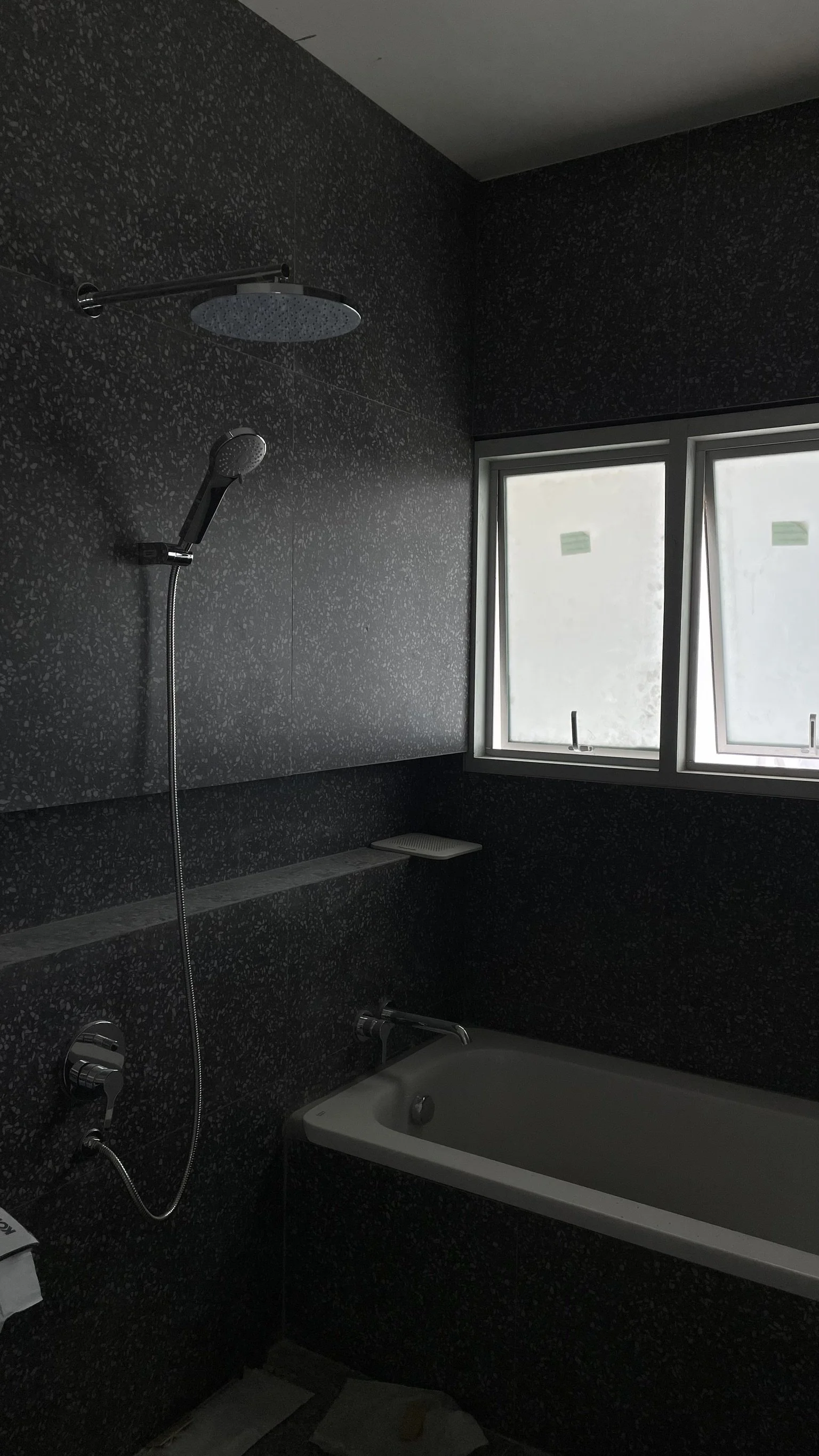 หนึ่งในความท้าทายที่น่าสนใจคือการเลือกใช้ Materials ที่ตอบโจทย์สุนทรียภาพเดิมของเจ้าของบ้านที่หลงใหลใน Polished Concrete หรือปูนขัดมัน แต่ด้วยข้อจำกัดด้านการควบคุมคุณภาพหน้างาน (Quality Control) ผู้ออกแบบได้นำเสนอทางเลือกใหม่ที่มีความประณีตกว่า โดยเลือกใช้วัสดุทดแทนที่มีโทนสีละมุนและลวดลายที่สม่ำเสมอ เพื่อให้ได้ Look & Feel ที่โมเดิร์นและดูแลรักษาได้ง่ายในระยะยาว